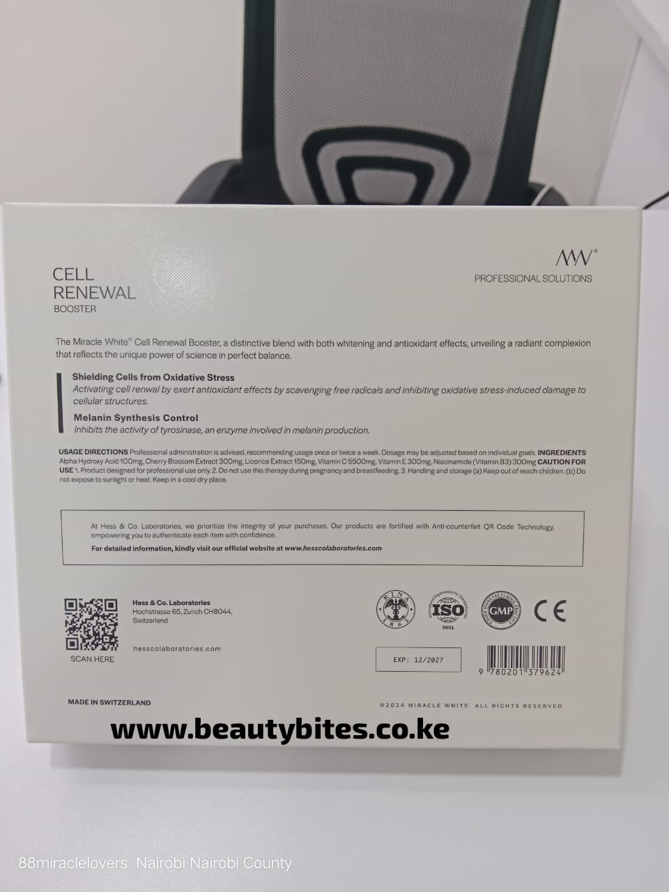 The Miracle White Cell Renewal Booster is a scientifically formulated skincare product designed for whitening and antioxidant benefits. This product is crafted to activate cell renewal, protect against oxidative damage, and regulate melanin synthesis, ultimately achieving a brighter, youthful, and radiant complexion.